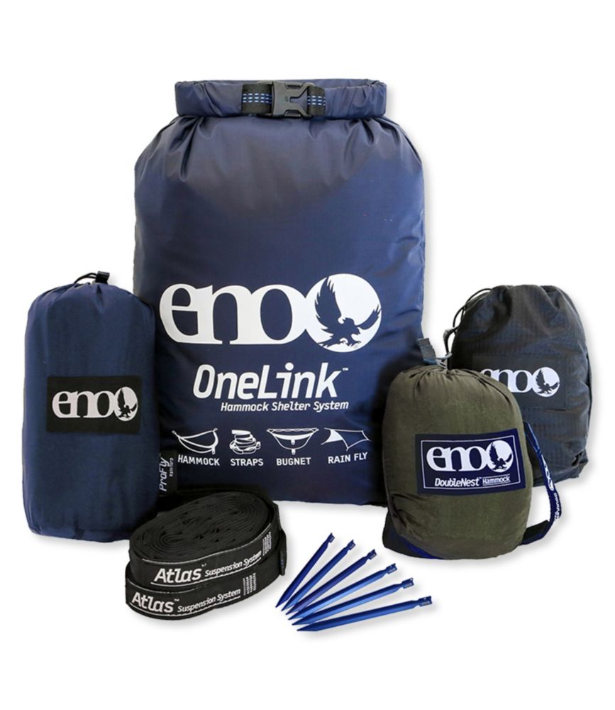 ENO OneLink Hammock Shelter System with DoubleNest Hammock 109 REI If this is your first visit be sure to check out the FAQ by clicking the link above. The OneLink Hammock Shelter System comes complete with a single hammock rainfly suspension system bug net and tent stakes giving you what you need to deal with Mother Nature while camping. ENO Eagles Nest Outfitters DoubleNest Print Lightweight Camping Hammock 1 to 2 Person. For sale is my ENO OneLink Hammock Shelter System with DoubleNest Deluxe Hammock. ENO Eagles Nest Outfitters DoubleNest Lightweight Camping Hammock 1 to 2 Person AquaRed. ENO revolutionized hammocking and sparked the hammock counter culture by creating the best hammocks lifestyle gear and first ever hammock straps. ENO Eagles Nest Outfitters DoubleNest Print Lightweight Camping Hammock 1 to 2 Person. Our systems include a hammock suspension bug nets and rain tarps for maximum comfort and protection. The Eno OneLink is my first hammock.