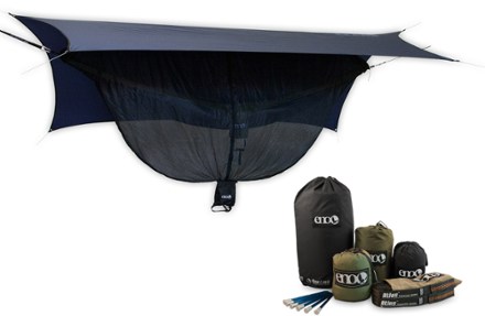 You may have to register before you can post. In this video we take a look at the Eagles Nest Outfitters One Link Hammock Shelter System. It includes Dryfly Rain Tarp with stakes Guardian Bugnet Doublenest Deluxe Hammock extra Wide and Atlas Straps.