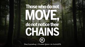 Rosa Luxemburg Polish-German Marxist philosopher economist anti-war activist and revolutionary socialist People especially those in privilege are not motivated to change. Rosa Luxemburg Quotes - BrainyQuote. Those who do not move do not notice their chains The book was written in 1912 and was published in 1913.